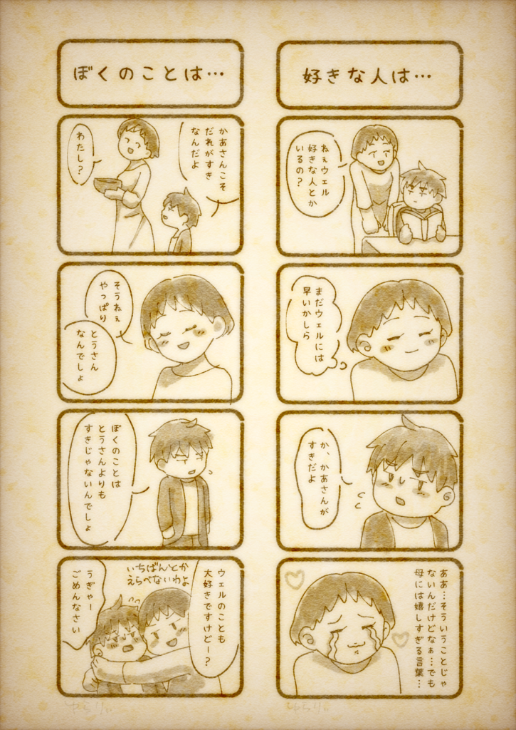 エテとウェルテクスの4コマ漫画 いらすと情報 2022.01.102023.04.26 ウェルテクスくんは……これはツンデレというやつですかね、あんまり素直になれない、少し捻くれた?子です。 でもまあ、エテちゃん(母)はそれなりに、そんなウェルテクスくんとの日々を楽しんでいるようですよ。
