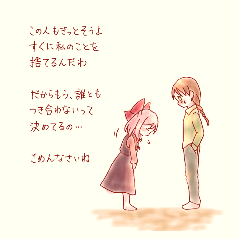 こちらと合わせて、『化け物』〜短編小説集『いっしょにいようね』より〜、『化け物』(歌)、『あなたが言ってくれた言葉』も見ていただくと、よりお楽しみできるかと思います……し、このページの物語がいかに雑で捏造(?)てるかがお分かりになるかと思います(苦笑)