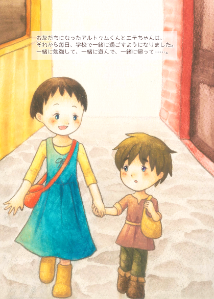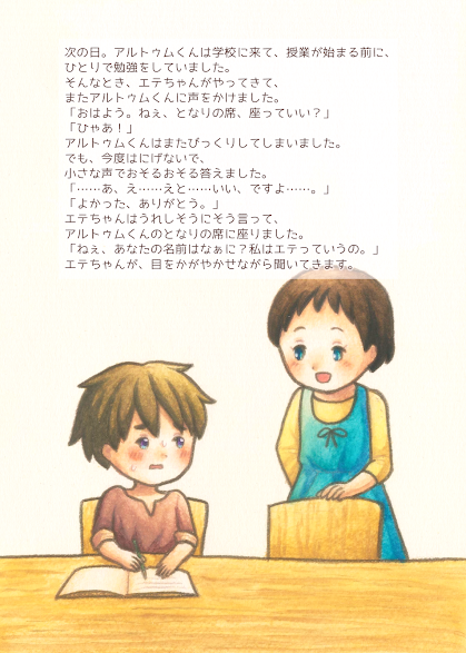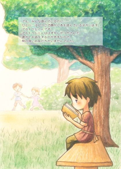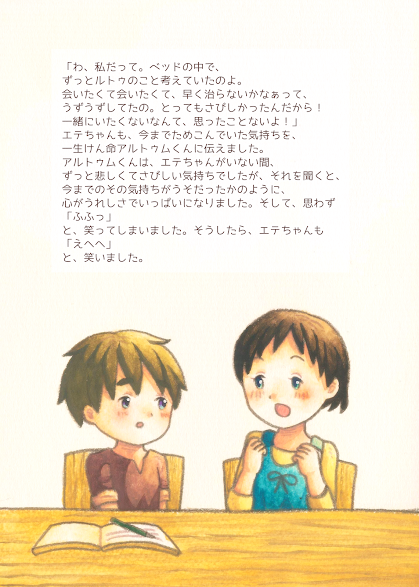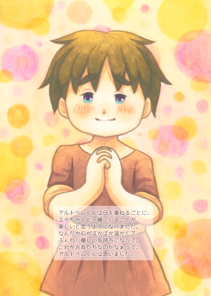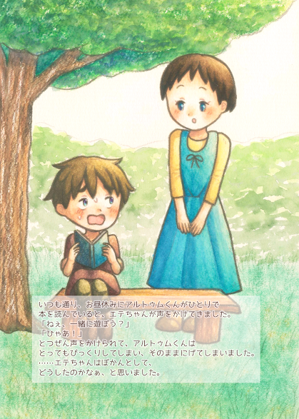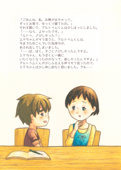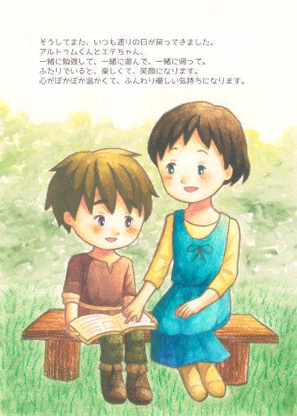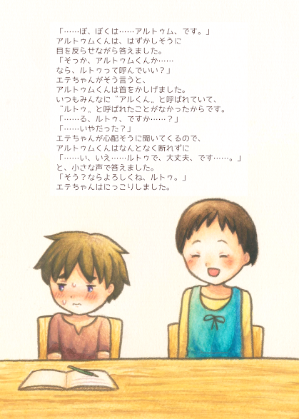 また、別のページで語るかもしれませんが、ちょっとだけ言うと……エテちゃんもかなり訳ありちゃんです、この絵本ではアルトゥムばかり救われているように描写されていますが、本編ではエテちゃんもアルトゥムに大きく救われています。