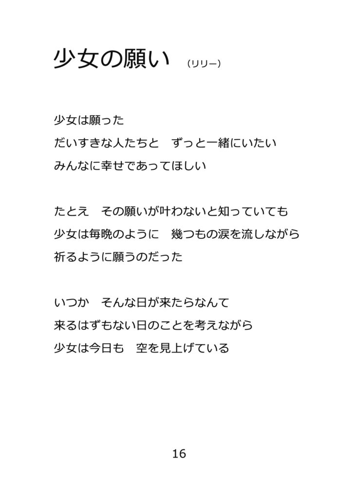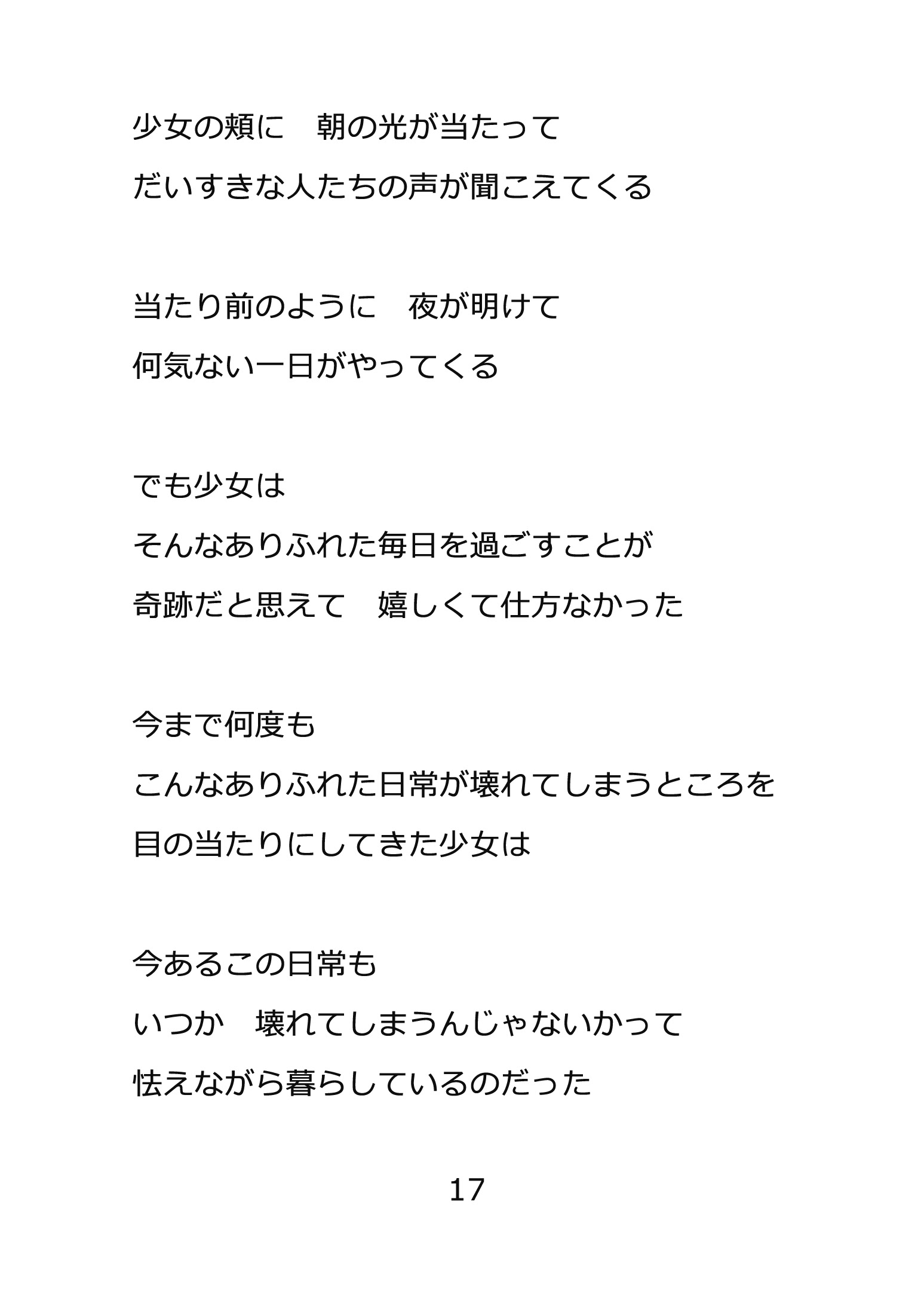 『少女の願い』〜短編小説集『いっしょにいようね』より〜 うちの子情報 2022.11.012022.11.02 これはリリーのお話?です。 まずは内容からご覧ください。 はい、物語はこの2ページだけなのに、あとがきが異様に長いんです。 内容がないよー() リリーの基本的なことばかり書いているつまらんやつです。