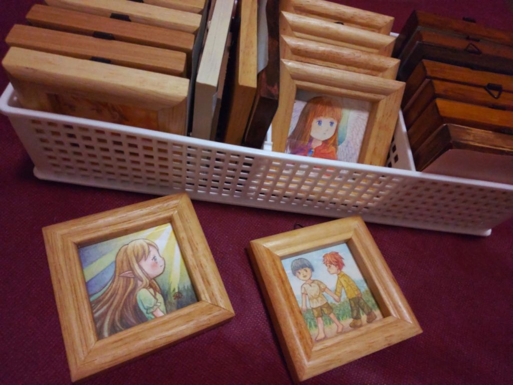 フレームに入れていた作品もあるかもしれせんが、けっこう古いものばかりなので、そのフレームにも新しい作品を入れるべく……いわゆる在庫整理です。